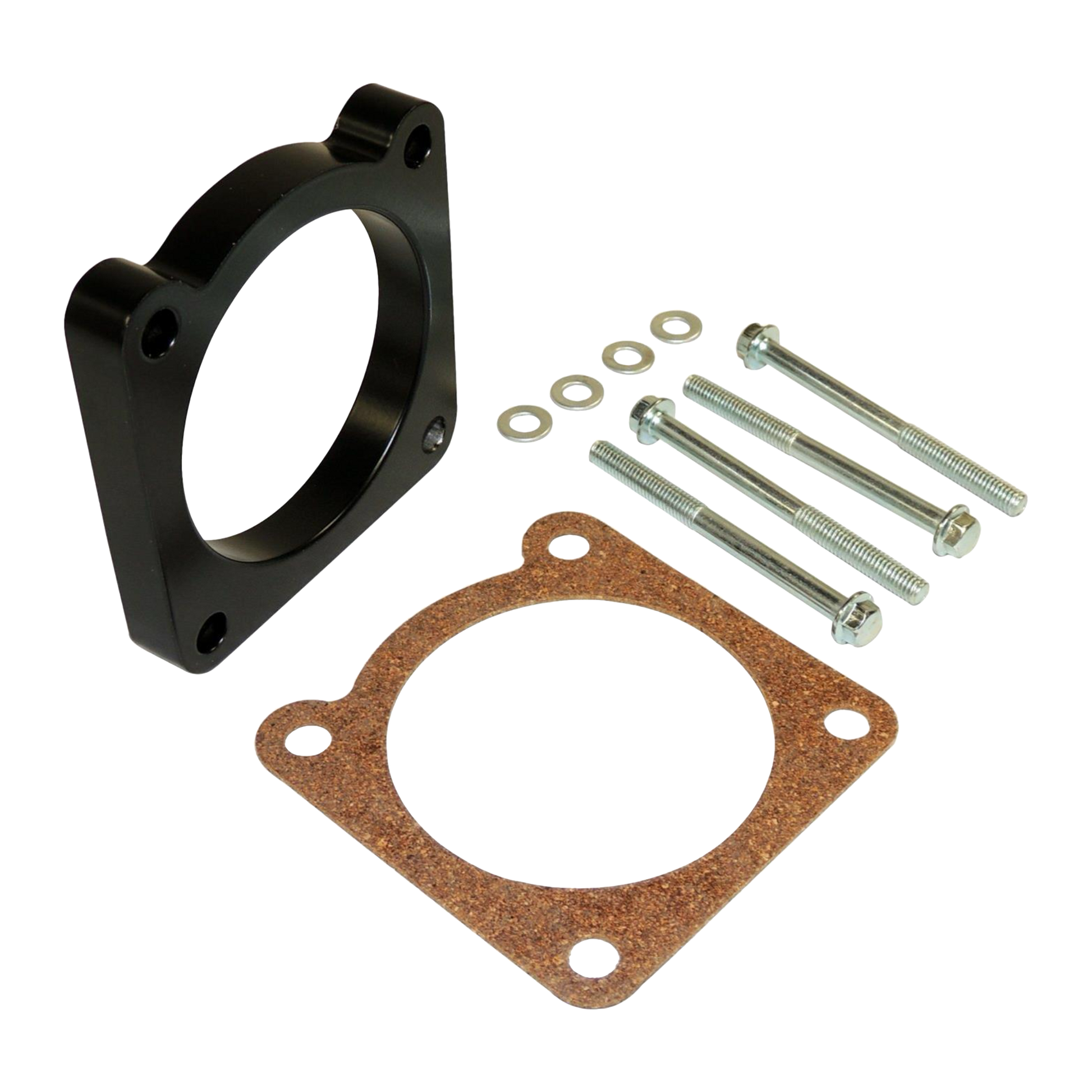 1/2″ Thick to Provide a Smoother, Faster and More Dense Air Charge Resulting in HP, TQ and MPG Increases. Kit Includes: Aluminum Spacer, Gasket, Bolts and Washers.